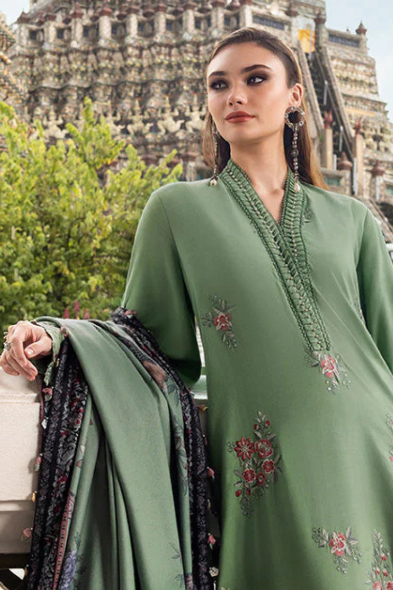 3 Piece Unstitched Embroidered Twill Linen Suit
